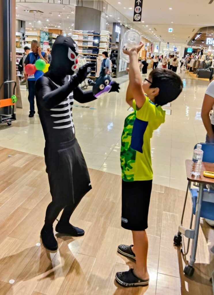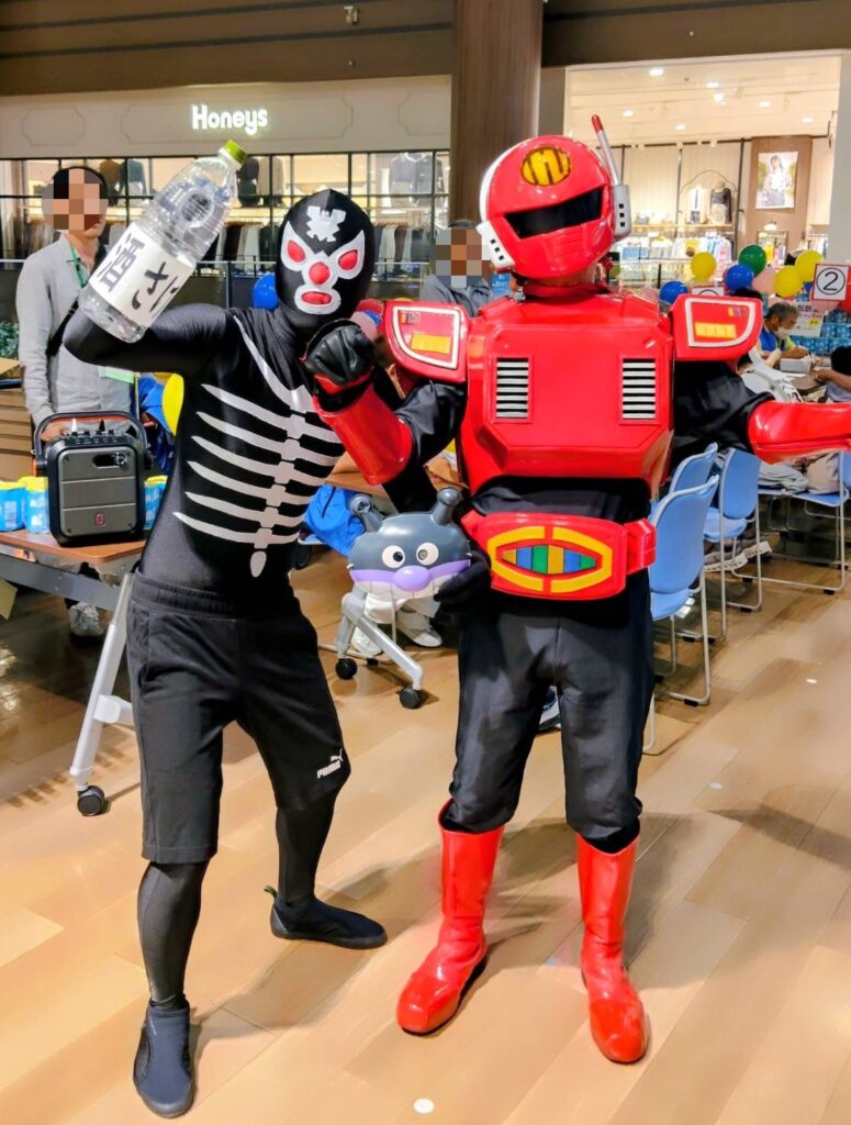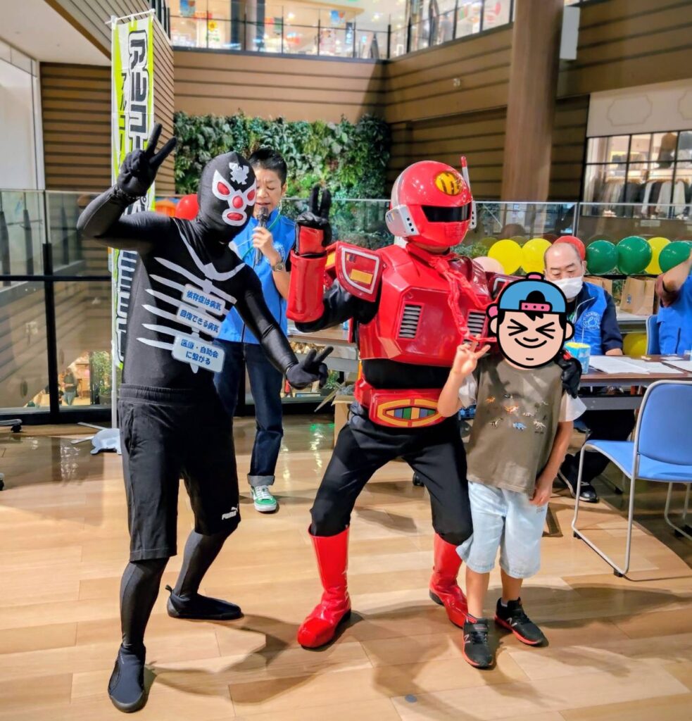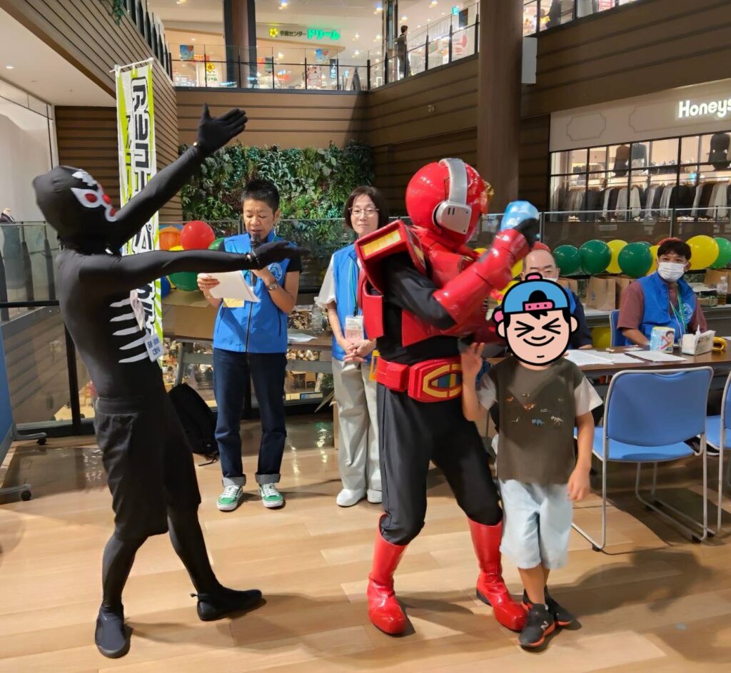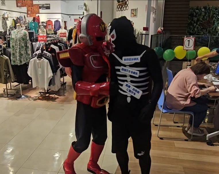 アルコールパッチテストの無料実施・依存症啓発ポスター展示・子供たちには風船を配り、お馴染のオリジナルヒーロー 「アディクション仮面」の登場と共に「怪人ヨッパー」も登場し、ちょとコミカルな依存症予防啓発ショーの披露もありました![]()