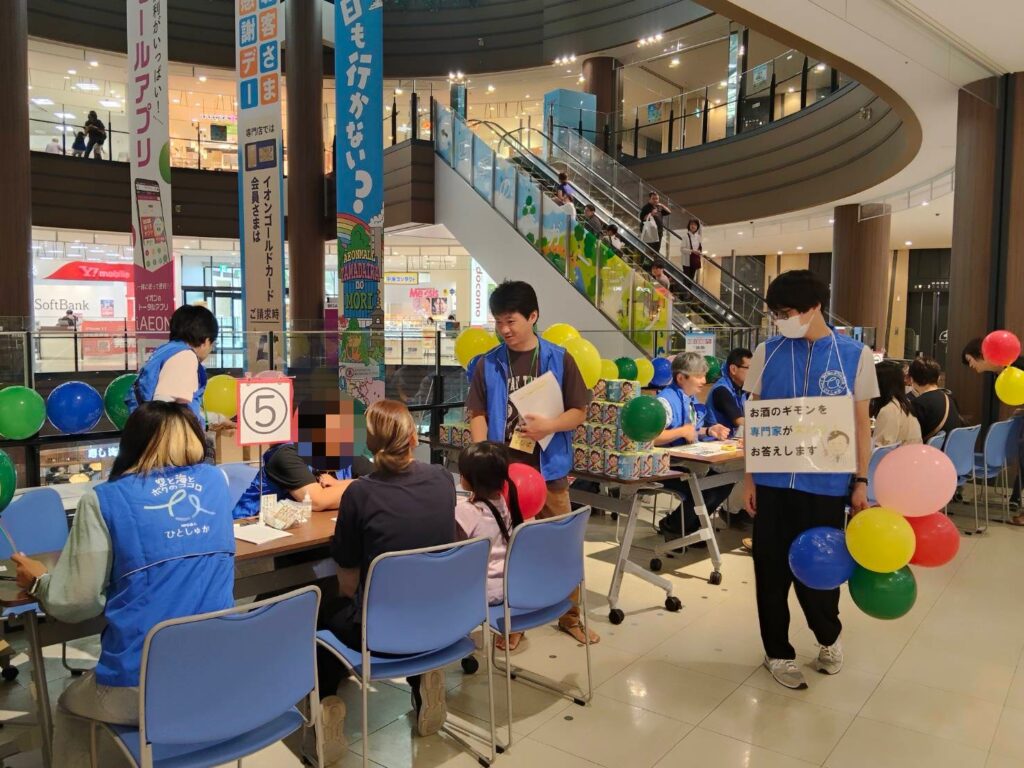 行き交うモールのお客様に依存症の啓発を呼び掛け、アルコールバッチテストも2歳以上お子様も含め300名を越えるお客様に実施して頂きました![]()