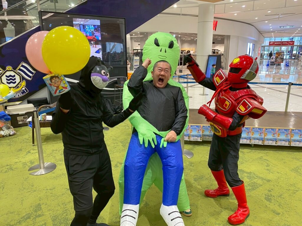 元祖お姉さんが集客とヒーローショーを盛り上げてくれます。