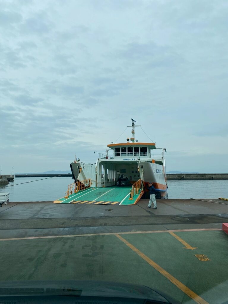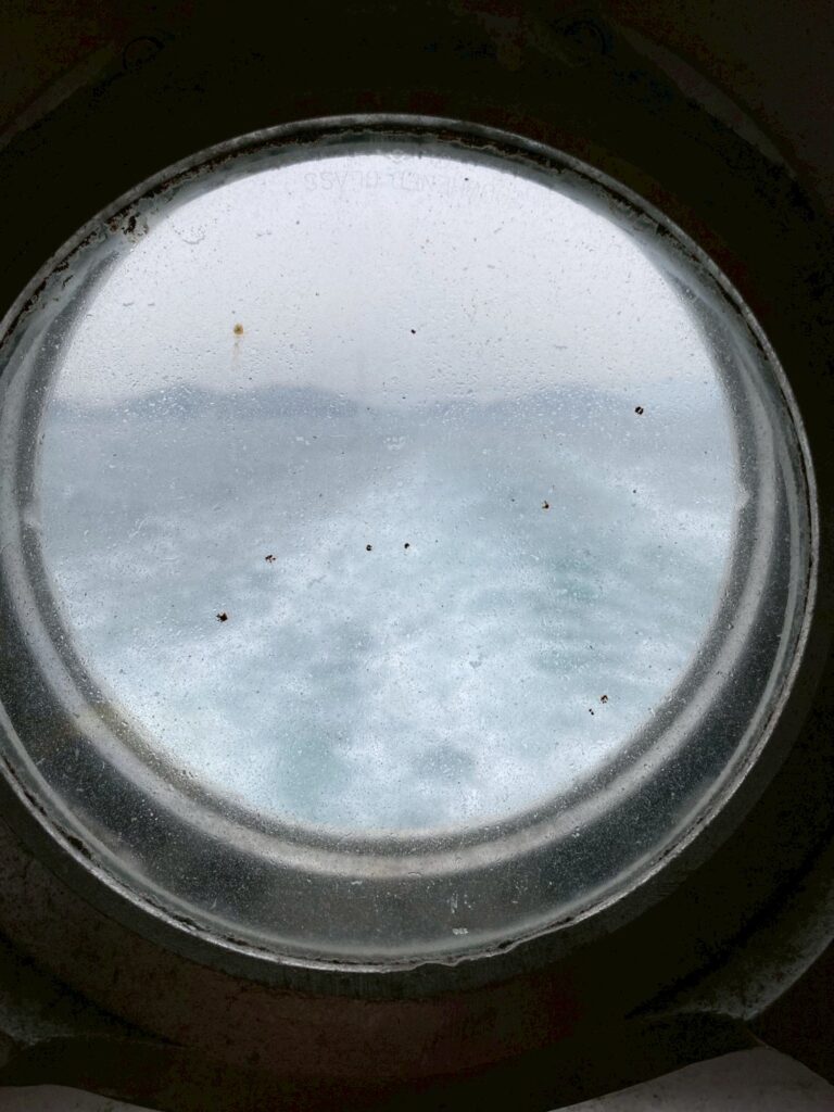 船に乗って瀬戸内海を渡ります。船特有の丸い窓は味があります。